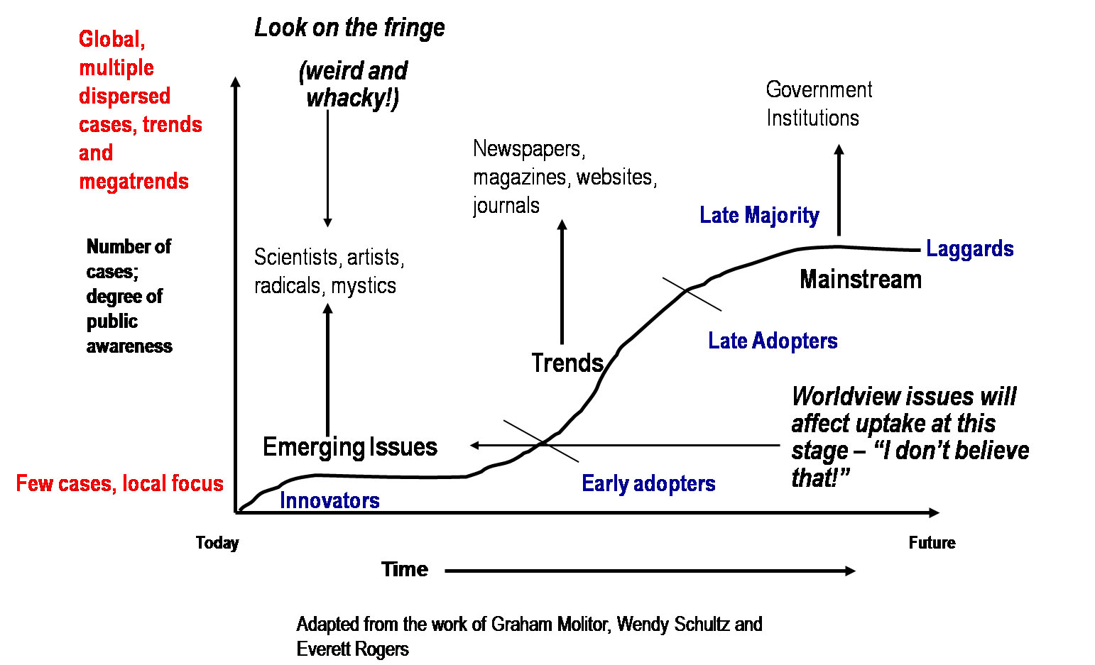 Basic trend analysis categorizes a trend according to its audience, starting with innovators, then early adopters, late adopters, and late majority (and sometimes laggards, if you’re feeling crotchety).